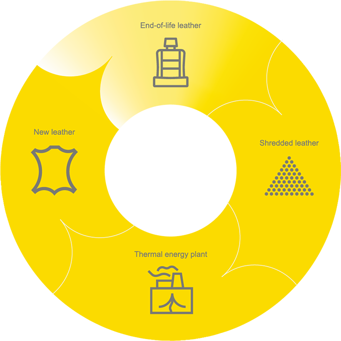 我们开创性的报废真皮回收计划使整个供应链循环化。以这种方式生产的真皮的碳强度仅为线性制造的10%。嵌入真皮中的能量被回收和重新利用,永不丢失。